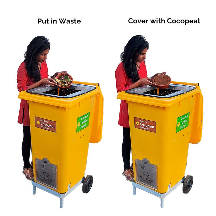 - Mix cocopeat powder with your daily waste in the provided bucket