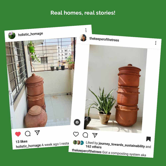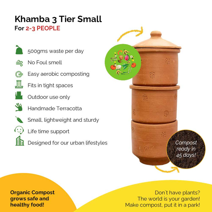 The Khamba is India's classic stack composter designed by Daily Dump in 2006 and now a national symbol for home composting. This Khamba is made for homes from 2 to 5 persons. Its stackable design makes it easy to fit in tight spaces - in the corner of your terrace, garden or balcony. The Khamba is a great way to connect with Nature from your home. With our always available helpline and customer support, you can soon become a composting champion yourself!