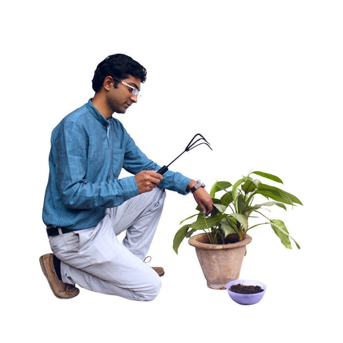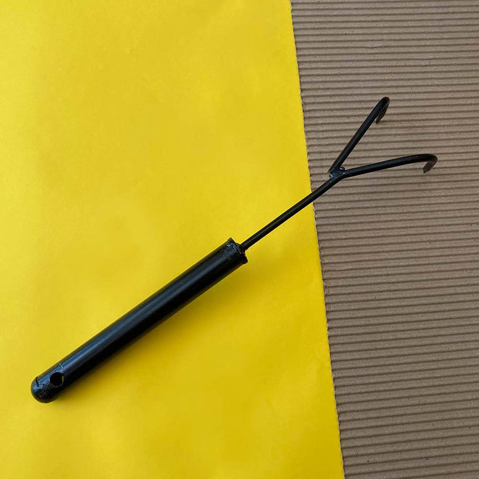 If there's one tool that can multitask for you, it's this Metal Rake! Keep it next to your home compost bin for easy mixing and transferring. Also use for digging and weeding in your garden for good aeration. Made of mild steel rods and pipes, the rakes are powder coated, sturdy and come in three sizes. The Small Rake and Long Rake is 3 pronged and the Medium Rake is 2 pronged. The metal rake comes with a hole on the handle for you to hang conveniently.