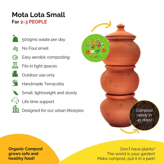Get the Mota Lota Small if you are a family of 2-3. It takes up to 500 gm of waste everyday.