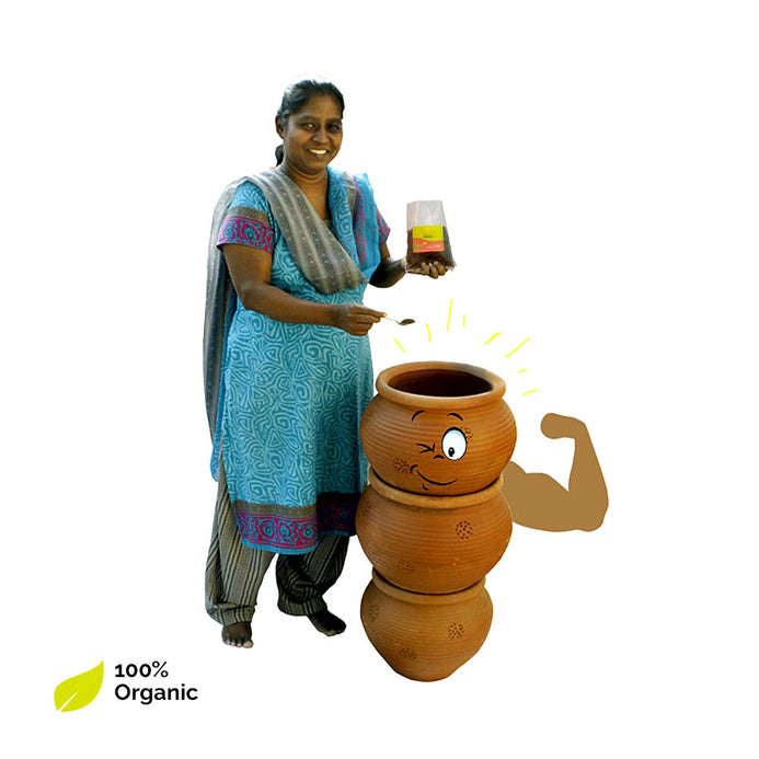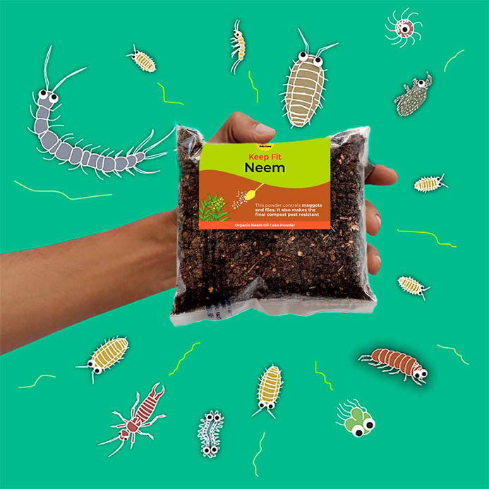Daily Dump Neem Powder keeps your home compost bin fit and healthy! Neem has been traditionally known for its insect-controlling properties. Made from organic neem oil cake, Neem powder is safe, non-toxic and contains several nutrients useful for soil and plants. When added to the compost pile and then applied to soil, Neem powder helps in elimination of harmful fungi and insects in addition to reducing soil acidity.