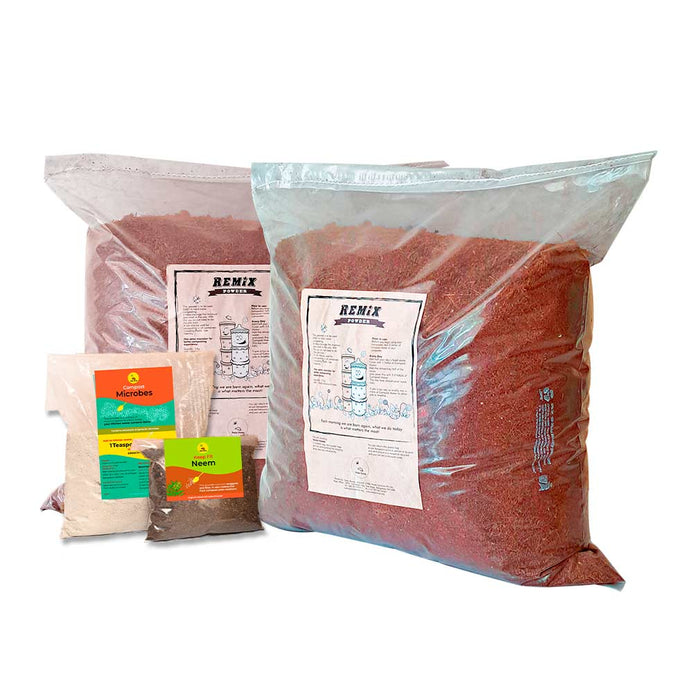In this cost saving bundle you get the microbes and neem along with the Remix Powder. These three additives keep your composting pile optimal - microbes accelerate the process and build heat and neem keeps away harmful pests during composting. Our easy to use Remix Powder is the most effective carbon source for aerobic composting at home.