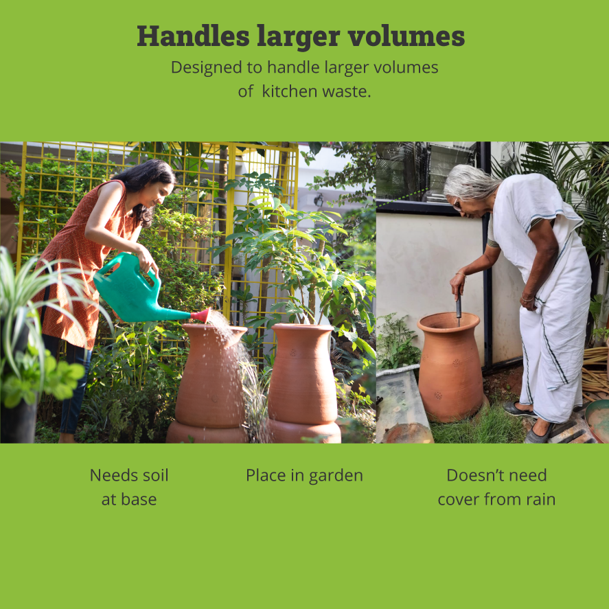 | Ideal for | wet waste composting in independent homes, villas, and apartments. |