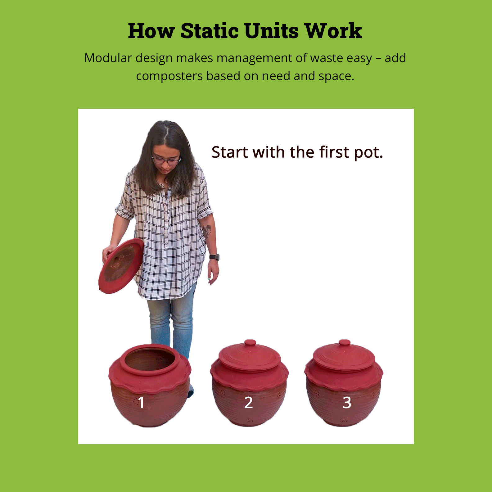 - Fill unit in 25-30 days and watch as compost happens.