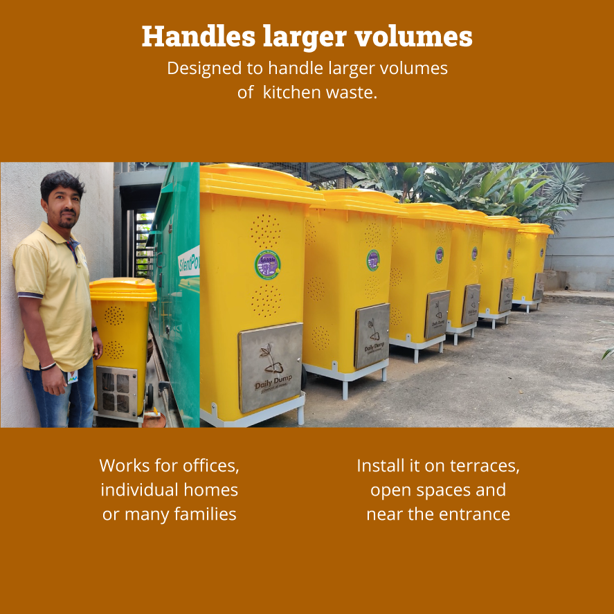 | Ideal for | wet waste composting in independent homes, villas, small apartment buildings, small offices and canteens, institutions |