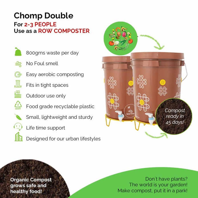 Have outdoor space at home and want to start composting? Want rich, nutritious leachate for your plants? The Daily Dump Chomp Composter would be a great option for you! An aerobic row compost bin with a modular design so you can add units as you need. You can buy a pair or three at a time at much lower costs than if you buy individually. Chomp Composters are also very useful for elderly folk and those with mobility issues as there is no need to lift and shift the composter units. You can get a stand here to easily remove the leachate.