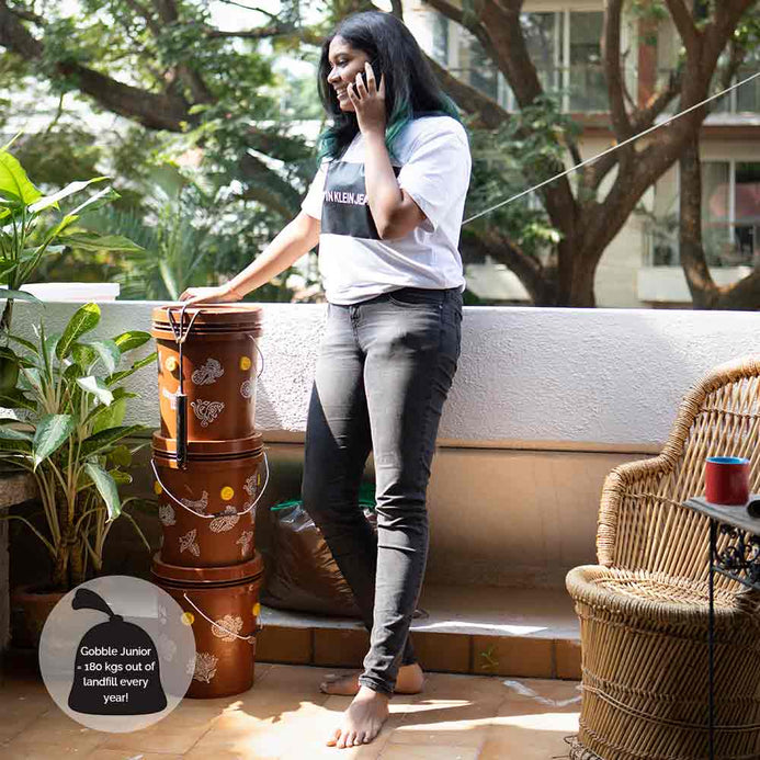 The Stackable, Modular Gobble Composter is designed for you to compost all your kitchen waste at home. Whether you want to test it out, a family of 1 or a family of 4-5, the Gobble Composter is here for you! Many of us who live in cities have tight living spaces and the Gobble Composter is designed just for that! Lightweight and easy to lift and shift, get composting right, with no foul smell or messy garbage pileups. You keep your home and the environment safe too! Instructions and necessary accessories included to start composting at home immediately.