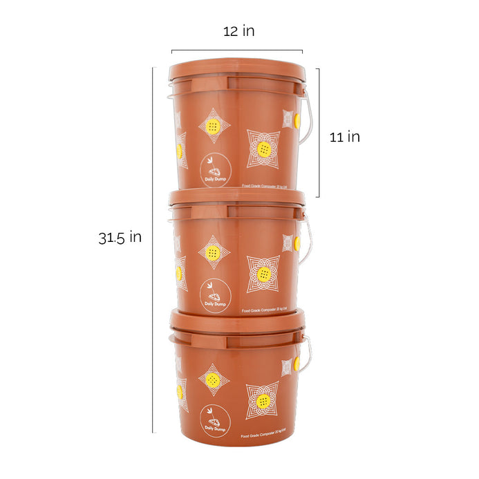 | Dimensions (inches) | Gobble Duo, Gobble Trio & Gobble Senior Each Unit 10"H * 12" Dia | 15 litres per unit Gobble Junior Each Unit 12.5"H x 10" Dia | 10 litres per unit |