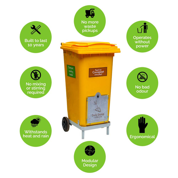 - Mix cocopeat powder with your daily waste in the provided bucket