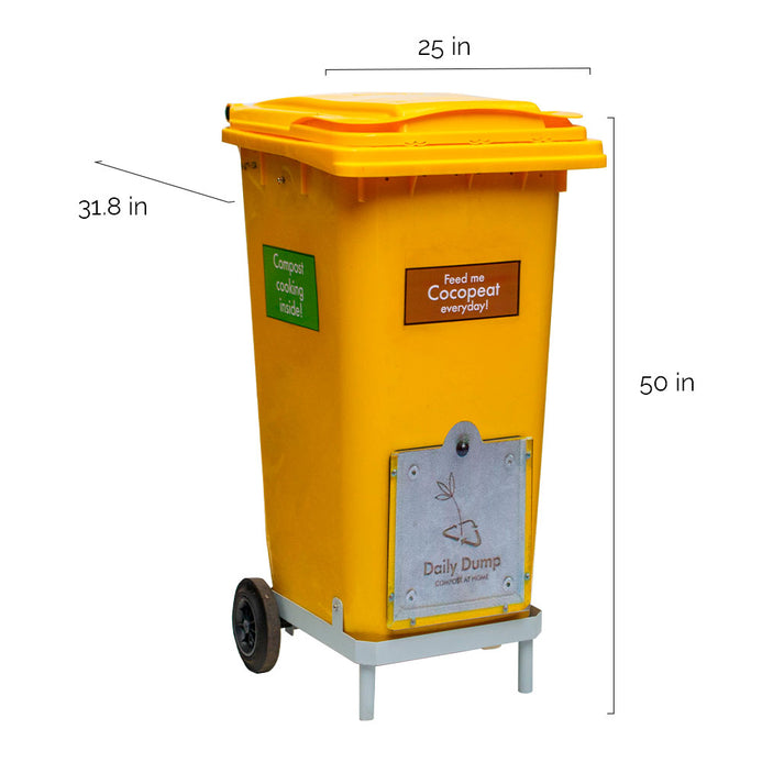 | Contents | Full Kit = 1 composter unit + stand + Cocopeat 8 kgs + Compost Microbes 1 kg + Rake + Gloves + Tarpaulin sheet + Plastic drum + plastic bucket +bowl + scoop + User Manual Basic Kit = 1 composter unit + stand + Cocobrick 3 numbers + Compost Microbes 1 kg + Rake + plastic bucket + bowl + User Manual |