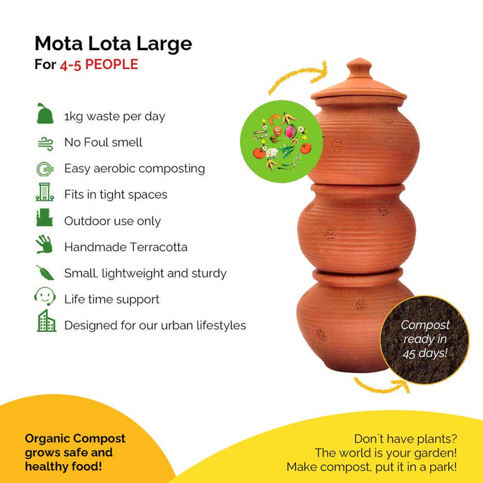 Get the Mota Lota Large if you are a family of 4-5. It takes up to 1 kg of waste everyday.