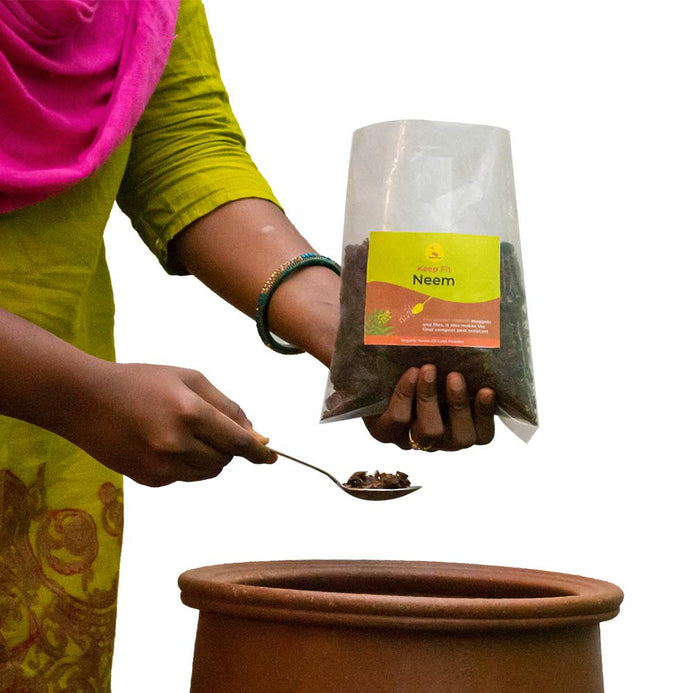 Daily Dump Neem Powder keeps your home compost bin fit and healthy! Neem has been traditionally known for its insect-controlling properties. Made from organic neem oil cake, Neem powder is safe, non-toxic and contains several nutrients useful for soil and plants. When added to the compost pile and then applied to soil, Neem powder helps in elimination of harmful fungi and insects in addition to reducing soil acidity.