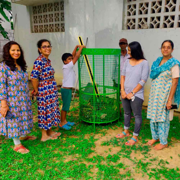 In the Gobble Mini, Gobble Max, Terrabite, Gaia, Aaga or Leaf Composters once the compost is harvested, the waste needs to be pushed down from the top. This will create space for fresh waste from above. The Presser Rod helps you push this waste down in a no-fuss, no-hassle way! Made of mild steel pipe and sheet, the Presser Rod is powder coated and sturdy. It has a hole on the handle for you to hang conveniently.